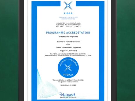 Yogyakarta, 13 April 2026 – Program Studi Film dan Televisi, Fakultas Seni Media Rekam, Institut Seni Indonesia Yogyakarta resmi memperoleh sertifikasi akreditasi internasional dari Foundation for International Business Administration Accreditation (FIBAA).